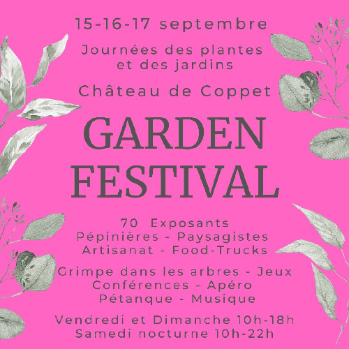Le Garden Festival vous donne rendez-vous au Château de Coppet du 15 au 17 septembre 2023. GARDEN FESTIVAL réunit tous les amoureux des végétaux et