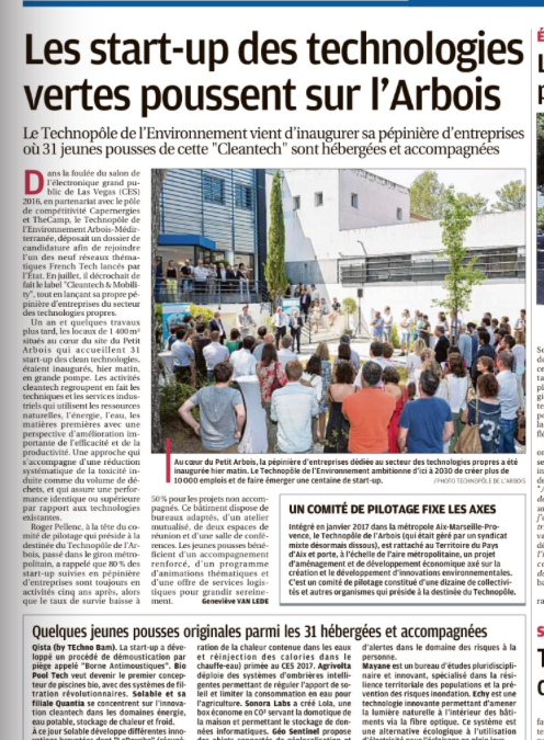 L’article de la Provence parlant des technologies vertes de BioPoolTech date de juin 2017